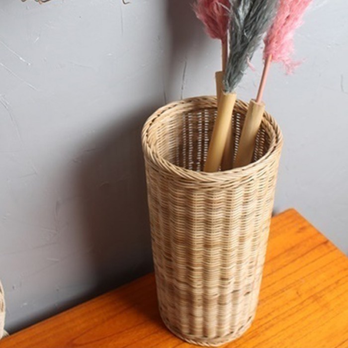 꾸미까 라탄 긴 원통 화병 바구니, 내츄럴