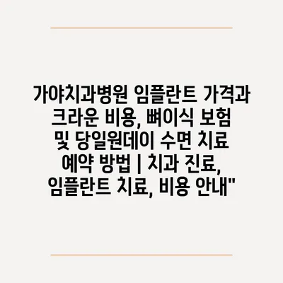 가야치과병원 임플란트 가격과 크라운 비용, 뼈이식 보험 및 당일원데이 수면 치료 예약 방법 | 치과 진료, 임플란트 치료, 비용 공지