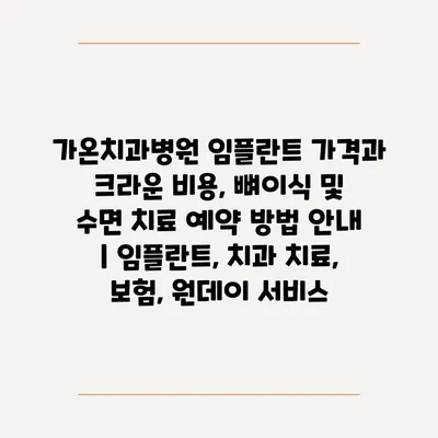 가온치과병원 임플란트 가격과 크라운 비용, 뼈이식 및 수면 치료 예약 방법 안내 | 임플란트, 치과 치료, 보험, 원데이 서비스