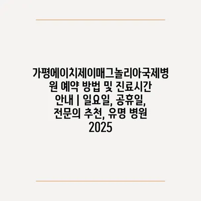 가평에이치제이매그놀리아국제병원 예약 방법 및 진료시간 공지 | 일요일, 공휴일, 전연락 추천, 유명 병원 2025