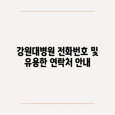 💡 강원대병원 유용한 연락처를 쉽고 빠르게 확인해 보세요. 💡