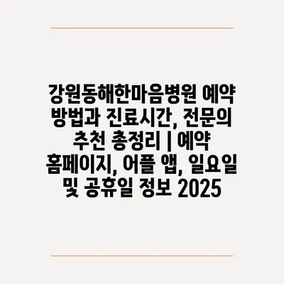 강원동해한마음병원 예약 방법과 진료시간, 전문의 추천 총정리 | 예약 홈페이지, 어플 앱, 일요일 및 공휴일 정보 2025