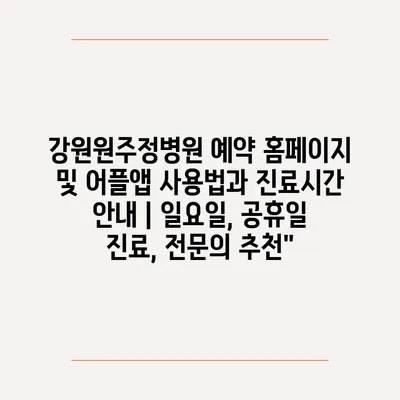 강원원주정병원 예약 홈페이지 및 어플앱 사용법과 진료시간 공지 | 일요일, 공휴일 진료, 전연락 추천에 대해 자주 묻는 질문 TOP 5