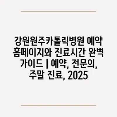 강원원주카톨릭병원 예약 홈페이지와 진료시간 완벽 설명서 | 예약, 전연락, 주말 진료, 2025에 대해 알아보겠습니다.