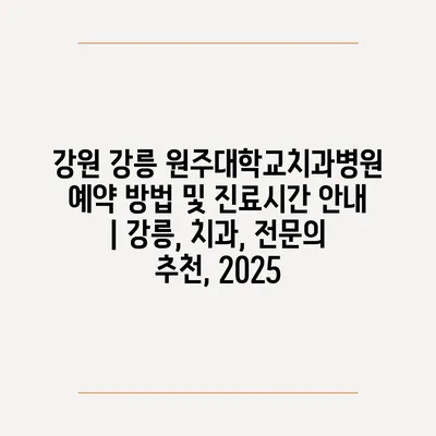 ✅ 강릉 원주대학교치과병원의 예약 절차와 진료시간을 자세히 알아보세요.