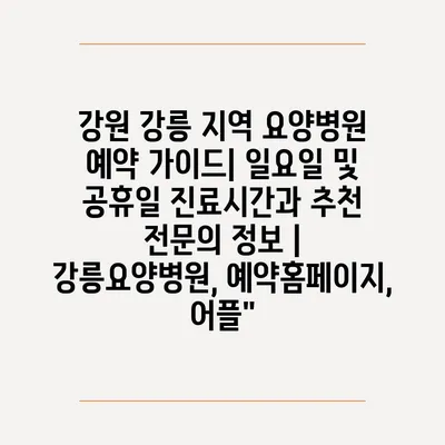 강원 강릉 지역 요양병원 예약 설명서| 일요일 및 공휴일 진료시간과 추천 전연락 정보 | 강릉요양병원, 예약홈페이지, 어플” 에 대해 자주 묻는 질문 TOP 5