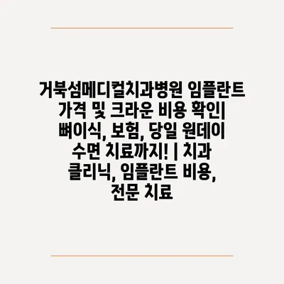 거북섬메디컬치과병원 임플란트 가격 및 크라운 비용 확인| 뼈이식, 보험, 당일 원데이 수면 치료까지! | 치과 클리닉, 임플란트 비용, 전문 치료 에 대해 자주 묻는 질문 TOP 5