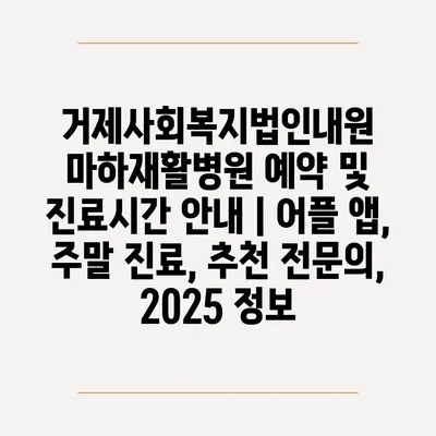 거제사회복지법인내원 마하재활병원 예약 및 진료시간 공지 | 어플 앱, 주말 진료, 추천 전연락, 2025 정보 에 대해 자주 묻는 질문 TOP 5