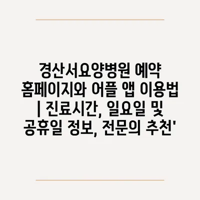 경산서요양병원 예약 홈페이지와 어플 앱 이용법 | 진료시간, 일요일 및 공휴일 정보, 전연락 추천 에 대해 자주 묻는 질문 TOP 5