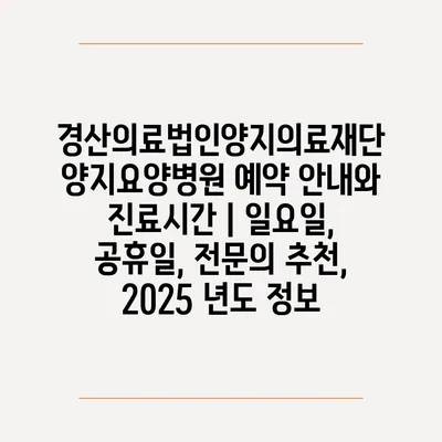 경산의료법인양지의료재단 양지요양병원 예약 공지와 진료시간 | 일요일, 공휴일, 전연락 추천, 2025 년도 정보에 대해 자주 묻는 질문 TOP 5