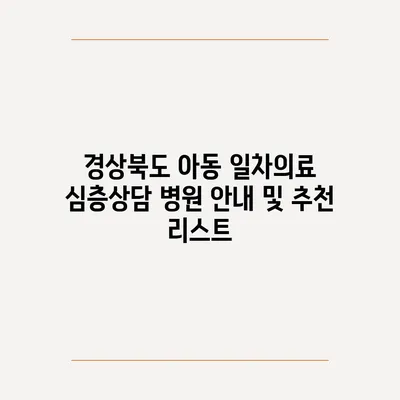 경상북도 아동 일차의료 심층상담 병원에 대해 깊이 있게 알아보세요. 아동의 건강과 예방적 관리를 위한 정보가 가득합니다.