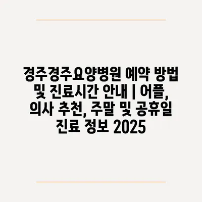 경주경주요양병원 예약 방법 및 진료시간 공지 | 어플, 의사 추천, 주말 및 공휴일 진료 정보 2025