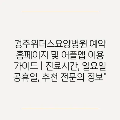 경주위더스요양병원 예약 홈페이지 및 어플앱 이용 설명서 | 진료시간, 일요일 공휴일, 추천 전연락 정보” 에 대해 자주 묻는 질문 TOP 5