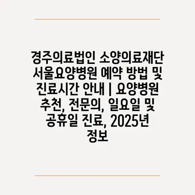 경주의료법인 소양의료재단 서울요양병원 예약 방법 및 진료시간 안내 | 요양병원 추천, 전문의, 일요일 및 공휴일 진료, 2025년 정보