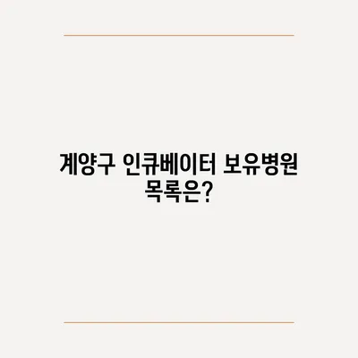 계양구 인큐베이터 보유병원 목록은?
