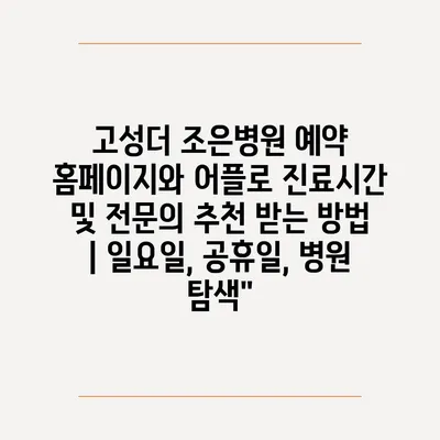 ✅ 고성더 조은병원 예약 절차를 상세히 알아보세요.