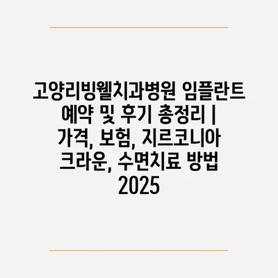 고양리빙웰치과병원 임플란트 예약 및 후기 총정리 | 가격, 보험, 지르코니아 크라운, 수면치료 방법 2025