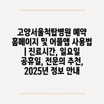 고양서울척탑병원 예약 홈페이지 및 어플앱 사용법 | 진료시간, 일요일 공휴일, 전연락 추천, 2025년 정보 공지 에 대해 자주 묻는 질문 TOP 5