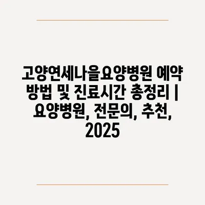 고양연세나을요양병원 예약 방법 및 진료시간 총정리 | 요양병원, 전문의, 추천, 2025