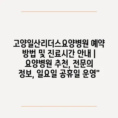 고양일산리더스요양병원 예약 방법 및 진료시간 안내 | 요양병원 추천, 전문의 정보, 일요일 공휴일 운영”