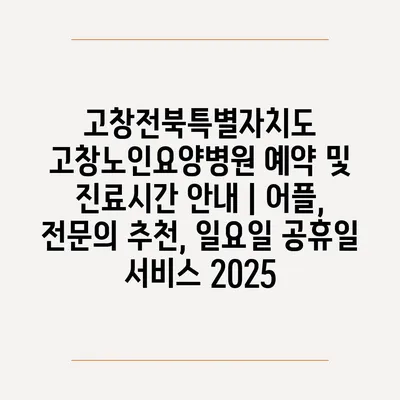 고창전북특별자치도 고창노인요양병원 예약 및 진료시간 공지 | 어플, 전연락 추천, 일요일 공휴일 서비스 2025