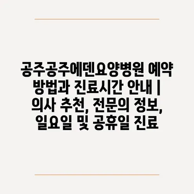 ✅ 공주공주에덴요양병원의 진료시간과 예약 방법을 알아보세요.