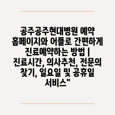 공주공주현대병원 예약 홈페이지와 어플로 간편하게 진료예약하는 방법 | 진료시간, 의사추천, 전문의 찾기, 일요일 및 공휴일 서비스”