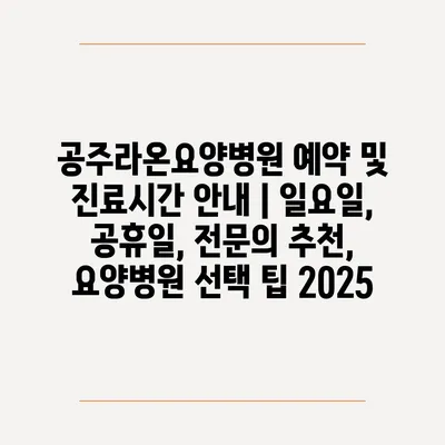 공주라온요양병원 예약 및 진료시간 공지 | 일요일, 공휴일, 전연락 추천, 요양병원 선택 팁 2025