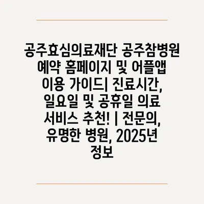 공주효심의료재단 공주참병원 예약 홈페이지 및 어플앱 이용 설명서| 진료시간, 일요일 및 공휴일 의료 서비스 추천! | 전연락, 유명한 병원, 2025년 정보 에 대해 자주 묻는 질문 TOP 5