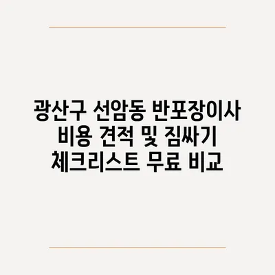 💡 광산구 선암동 반포장이사 비용을 지금 바로 알아보세요! 💡