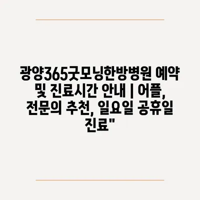 광양365굿모닝한방병원 예약 및 진료시간 안내 | 어플, 전문의 추천, 일요일 공휴일 진료”