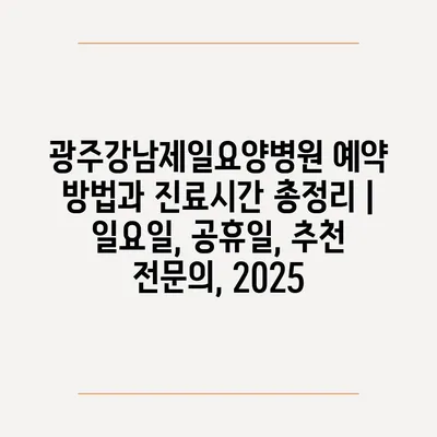 광주강남제일요양병원 예약 방법과 진료시간 총정리 | 일요일, 공휴일, 추천 전연락, 2025 에 대해 자주 묻는 질문 TOP 5