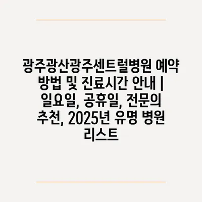 광주광산광주센트럴병원 예약 방법 및 진료시간 공지 | 일요일, 공휴일, 전연락 추천, 2025년 유명 병원 리스트 에 대해 자주 묻는 질문 TOP 5