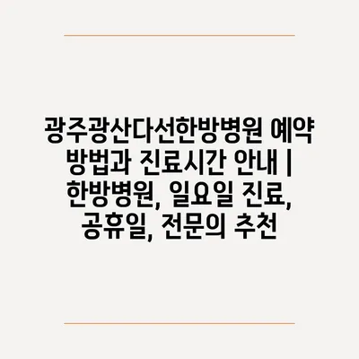 ✅ 광주광산다선한방병원의 예약 방법을 자세히 알아보세요.