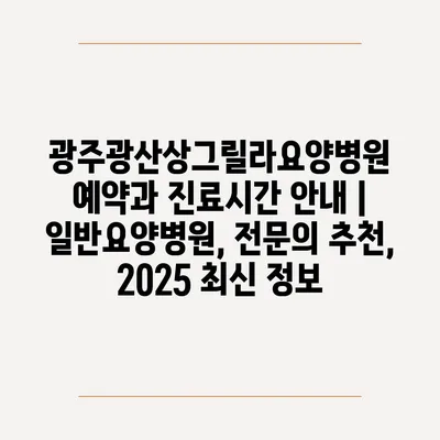 광주광산상그릴라요양병원 예약과 진료시간 공지 | 일반요양병원, 전연락 추천, 2025 최신 정보