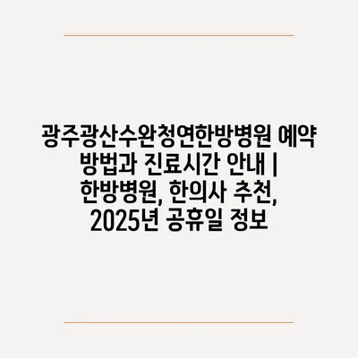 광주광산수완청연한방병원 예약 방법과 진료시간 공지 | 한방병원, 한의사 추천, 2025년 공휴일 정보 에 대해 자주 묻는 질문 TOP 5