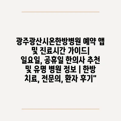 광주광산시온한방병원 예약 앱 및 진료시간 설명서| 일요일, 공휴일 한의사 추천 및 유명 병원 정보 | 한방 치료, 전연락, 환자 후기에 대해 자주 묻는 질문 TOP 5