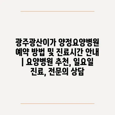 광주광산이가 양정요양병원 예약 방법 및 진료시간 공지 | 요양병원 추천, 일요일 진료, 전연락 상담 에 대해 자주 묻는 질문 TOP 5