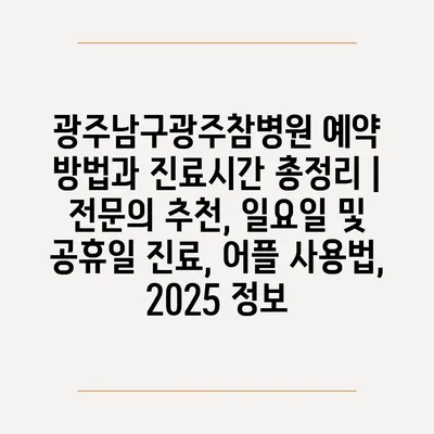 광주남구광주참병원 예약 방법과 진료시간 총정리 | 전연락 추천, 일요일 및 공휴일 진료, 어플 사용법, 2025 정보 에 대해 자주 묻는 질문 TOP 5