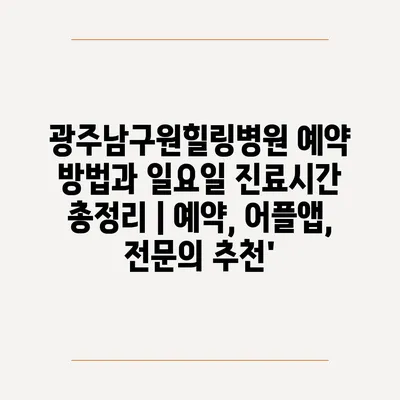 광주남구원힐링병원 예약 방법과 일요일 진료시간 총정리 | 예약, 어플앱, 전연락 추천’ 에 대해 자주 묻는 질문 TOP 5