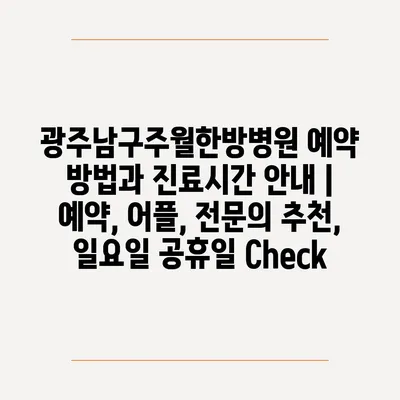 광주남구주월한방병원 예약 방법과 진료시간 안내 | 예약, 어플, 전문의 추천, 일요일 공휴일 Check