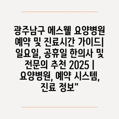광주남구 에스웰 요양병원 예약 및 진료시간 설명서| 일요일, 공휴일 한의사 및 전연락 추천 2025 | 요양병원, 예약 시스템, 진료 정보” 에 대해 자주 묻는 질문 TOP 5