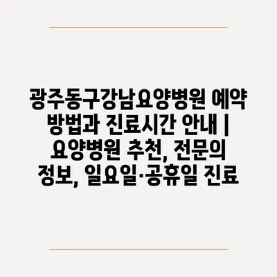 광주동구강남요양병원 예약 방법과 진료시간 안내 | 요양병원 추천, 전문의 정보, 일요일·공휴일 진료