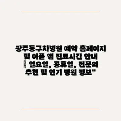 광주동구차병원 예약 홈페이지 및 어플 앱 진료시간 공지 | 일요일, 공휴일, 전연락 추천 및 인기 병원 정보