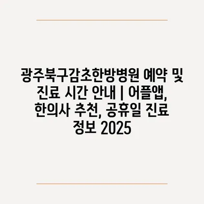 광주북구감초한방병원 예약 및 진료 시간 안내 | 어플앱, 한의사 추천, 공휴일 진료 정보 2025