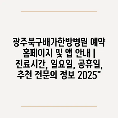 광주북구배가한방병원 예약 홈페이지 및 앱 공지 | 진료시간, 일요일, 공휴일, 추천 전연락 정보 2025