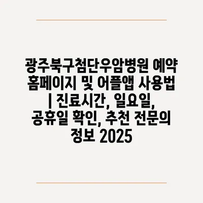 ✅ 광주북구첨단우암병원 예약 방법과 팁을 알아보세요.