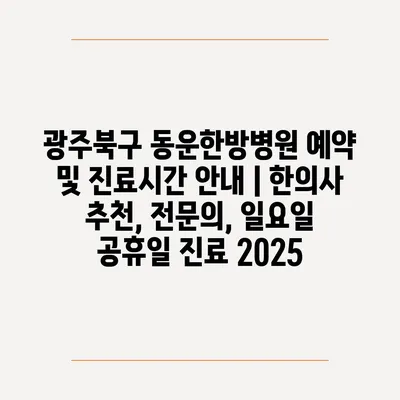 광주북구 동운한방병원 예약 및 진료시간 공지 | 한의사 추천, 전연락, 일요일 공휴일 진료 2025에 대해 자주 묻는 질문 TOP 5