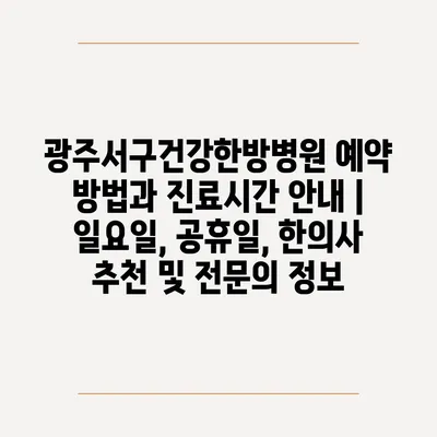 광주서구건강한방병원 예약 방법과 진료시간 공지 | 일요일, 공휴일, 한의사 추천 및 전연락 정보 에 대해 자주 묻는 질문 TOP 5