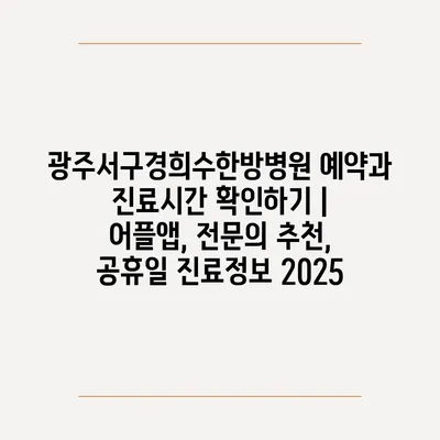 광주서구경희수한방병원 예약과 진료시간 확인하기 | 어플앱, 전연락 추천, 공휴일 진료정보 2025 에 대해 자주 묻는 질문 TOP 5